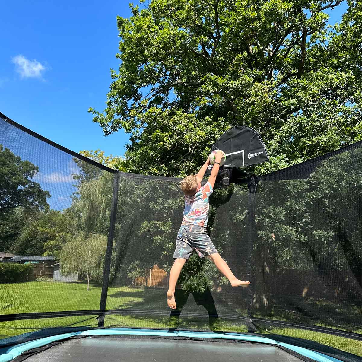 Unsere ovalen Trampoline heißen North Pioneer und North Legend.