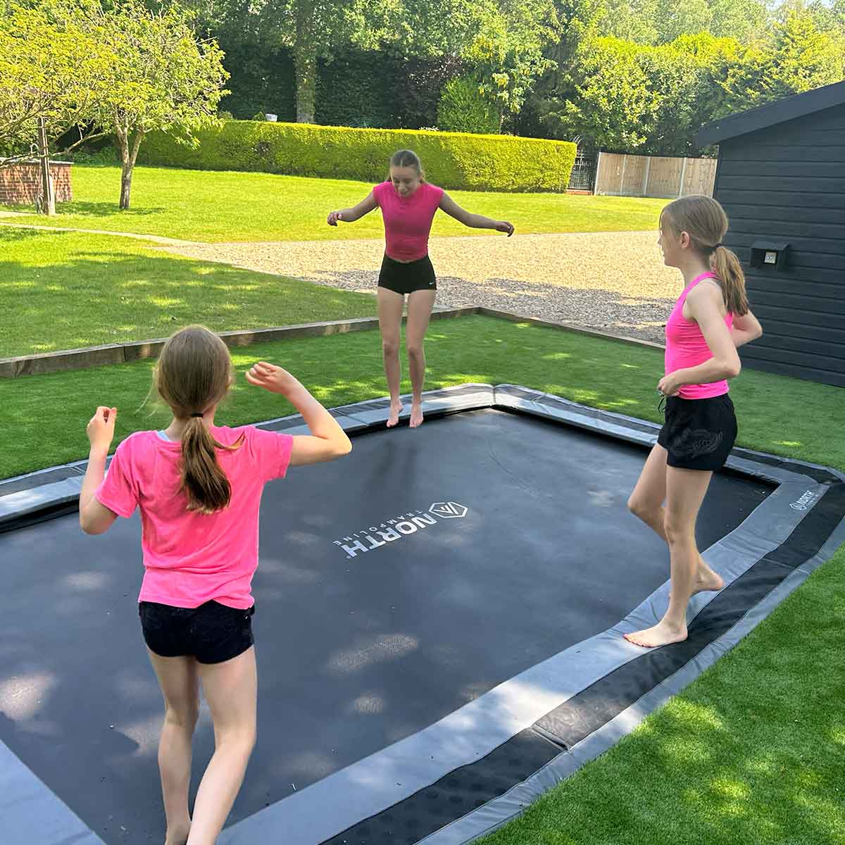 Möchtest du ein Trampolin, dass sich besonders harmonisch in den Garten einfügt? Dann empfehlen wir dir ein Bodentrampolin!