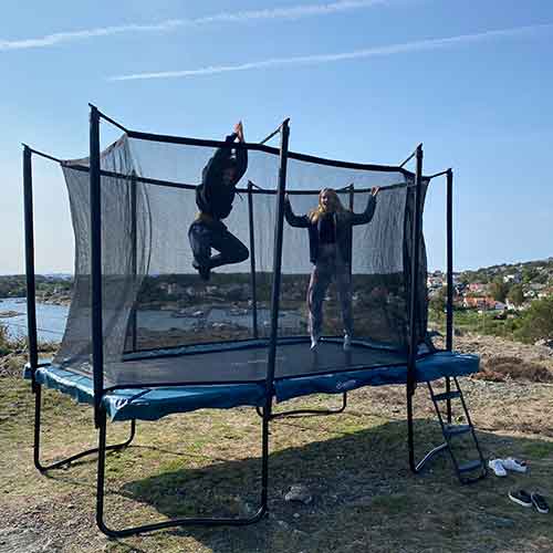 - Eine rechteckige Form bietet eine größere Sprungfläche als ein entsprechendes rundes Trampolin.