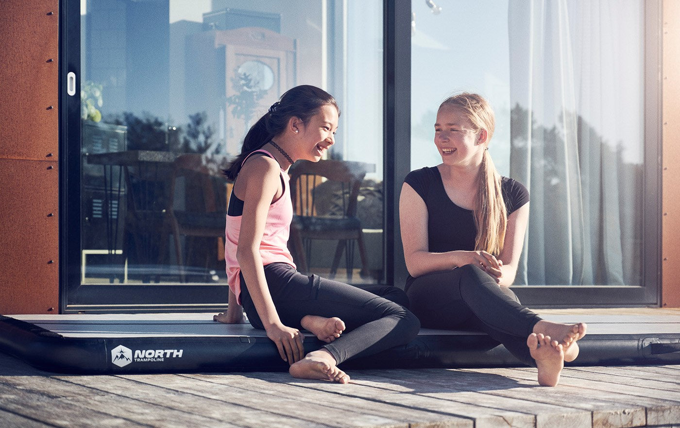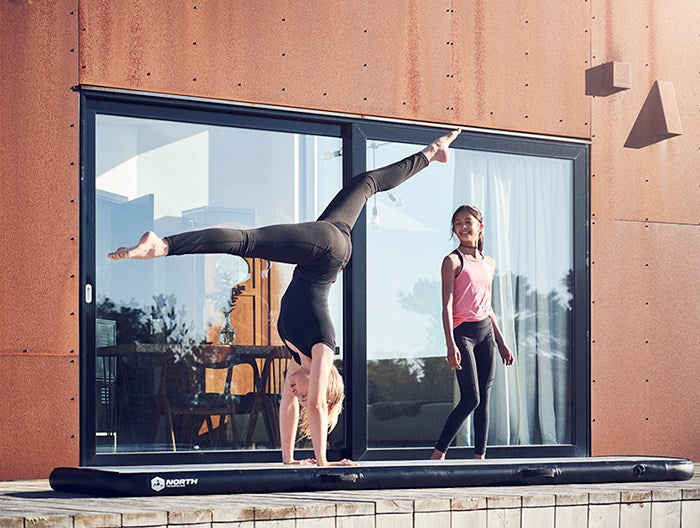 Das North Airtrack funktioniert im Freien genauso gut wie im Innenbereich. Damit kann man das ganze Jahr über trainieren und Spaß haben.